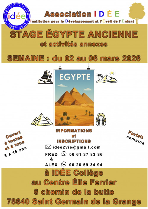 Stage Egypte ancienne du 02 au 06 mars 2026, au Centre Elie Ferrier.